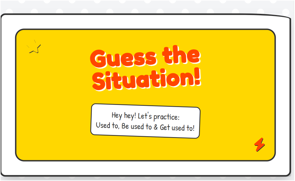 OK, vale… now we’re getting to the fun part! We already nailed the grammar, so it’s time to put it to work in an activity that always gets my students laughing, thinking, and stretching their English muscles. And the goal? Guessing a brand-new situation using clues built with our three magic structures.