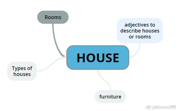 Ask students to work in pairs. Write on the board a mind map as the one below to help them revise vocabulary related to this thematic area. Allow them some minutes to complete their mind maps and get feedback from the whole class, completing the mind map on the board with their suggestions. Then, give them handout 1, explain difficult vocabulary and ask students to talk about the kind of house they live in and their favourite room in the house.